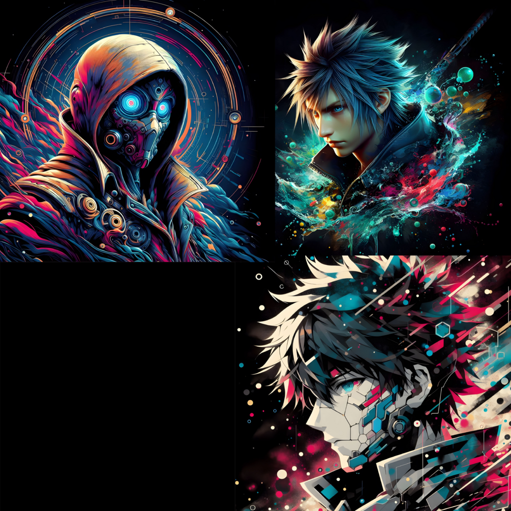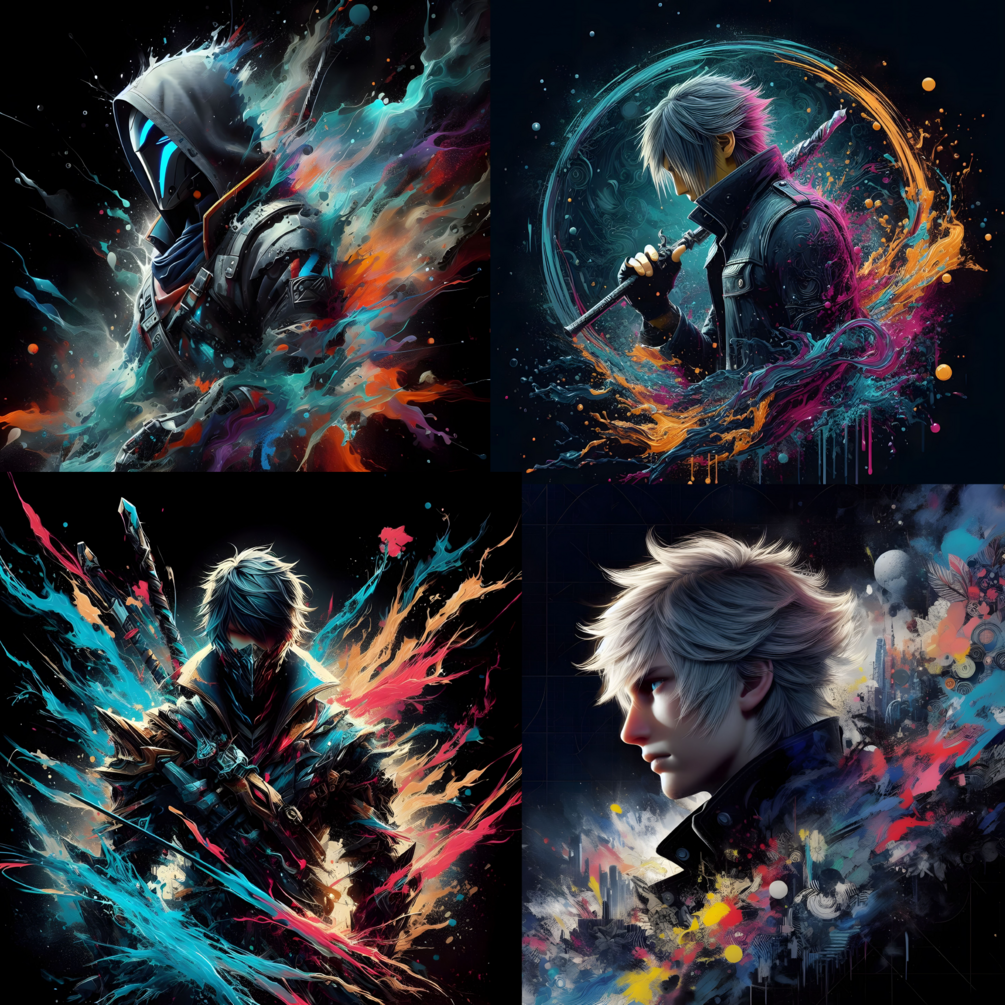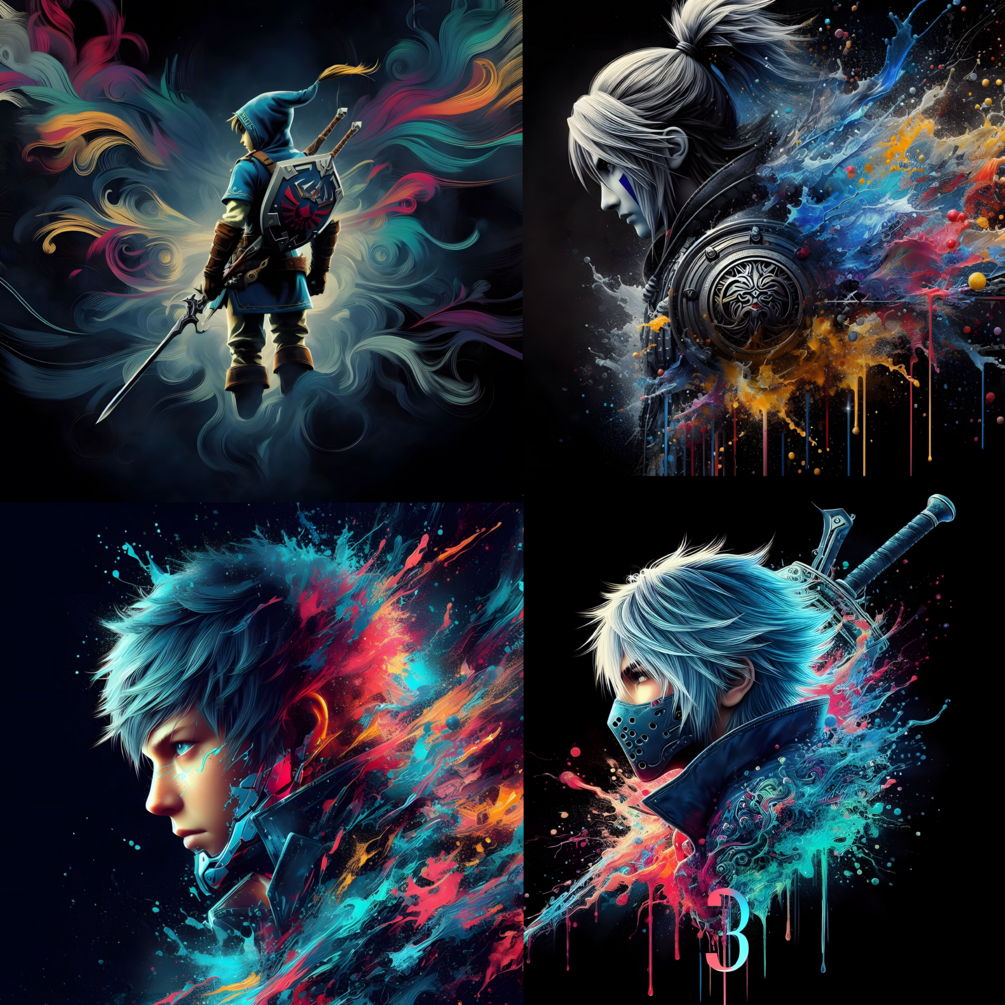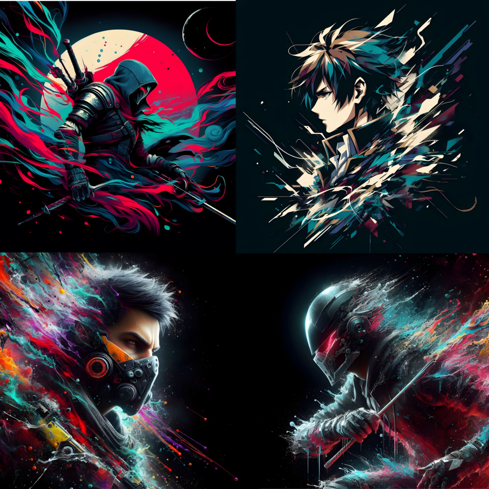 You will get Pack of 15 abstract AI generated upscaled images . It can be used for your t shirt design or any other computing needs . Images have different variation of game character with abstract colors and black background